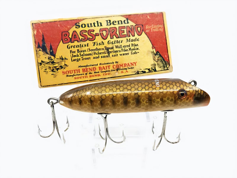 Ivar Hennings and an unidentified partner bought out the other owners in 1915 and in 1916 he acquired the right to a patent of James Olds of Benton Harbor, Michigan, for a lure which was to become the Bass-Oreno, the most popular lure made by South Bend Bait Company. The company soon employed about 50, mostly women, and made both wooden lures and the bucktail lures. The volume of bucktail lure production required keeping about 25,000 deer tails on hand. In 1917, South Bend Bait published its first catalog, “The Days of Reel Sport.”