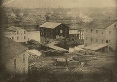 The West Race of the St. Joseph River was the heart of South Bend’s manufacturing district for sixty years before electrical power made it possible for factories to move away from the river. At least fifteen industries started production on the West Race, including Birdsell Manufacturing Company, Oliver and Bissel Foundry, Coquillard Wagon Works, and the Oliver Power Plant. By 1913, only South Bend’s Central Pumping Station and the Oliver Power Plant remained. The race was filled in during the 1960s, and today Century Center and Island Park mark the site.